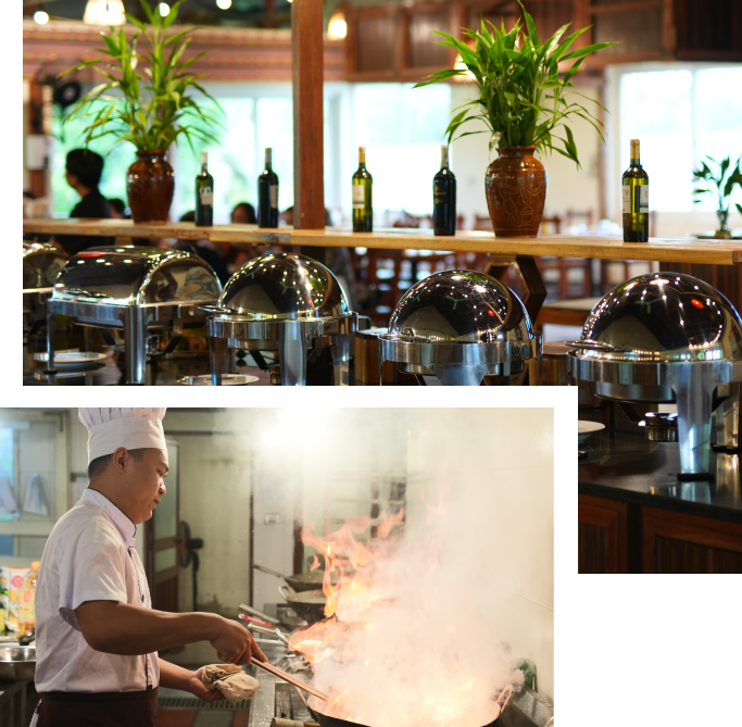 Hòa Bình được thiên nhiên ưu đãi với nhiều cảnh sắc tuyệt đẹp, giúp du khách tận hưởng cảm giác hòa mình cùng đất trời. Đội ngũ đầu bếp và nhân viên nhà hàng của chúng tôi luôn nỗ lực để giúp du khách thưởng thức trọn vẹn vẻ đẹp của thiên nhiên, thông qua các món ăn thơm ngon và tinh tế. Ẩm thực cũng là niềm tự hào của chúng tôi, sẵn sàng đáp ứng mọi yêu cầu của thực khách tùy theo sự kiện, độ tuổi, theo mùa và các yêu cầu đặc biệt khác.